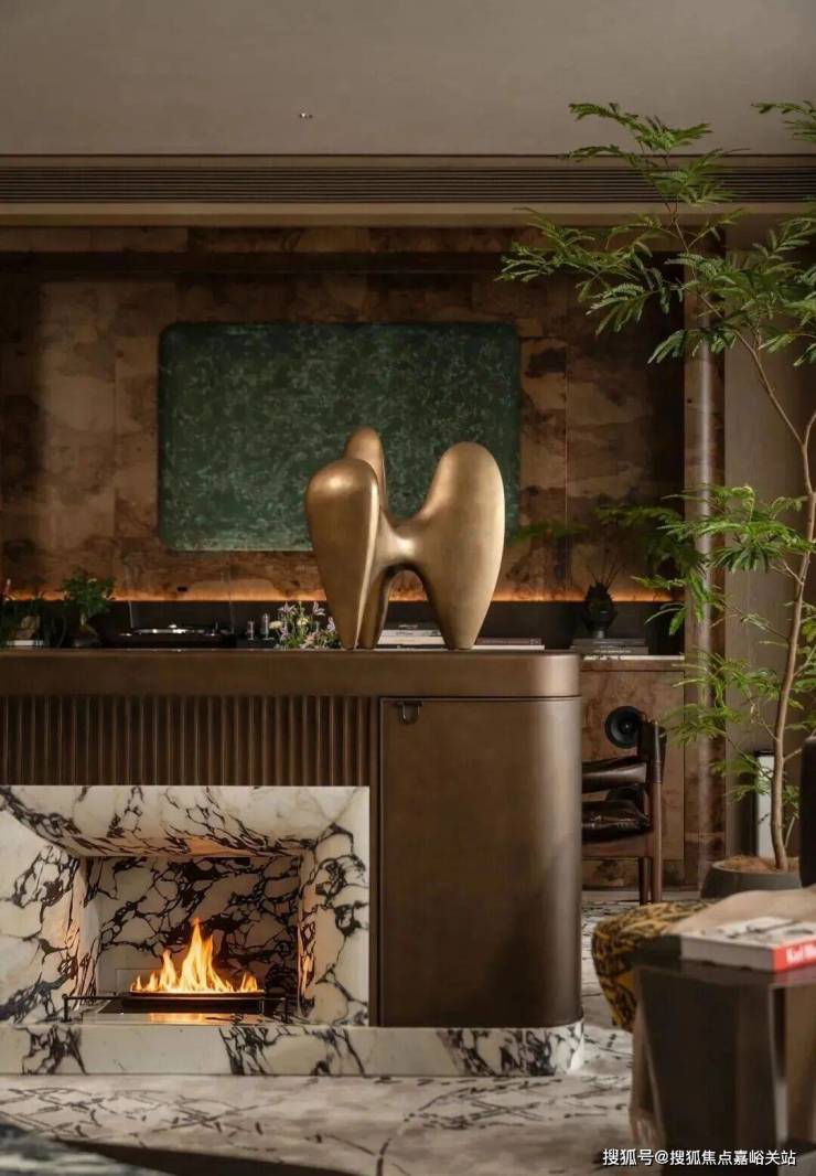 而且这个空间的装标也是非常精致的,1.7米双扇铸铝门,搭配宝格丽石材与祥云灰拼花,延伸至电梯厅。皇家白玉石玄关,兼具储物与展示功能,质感温润!