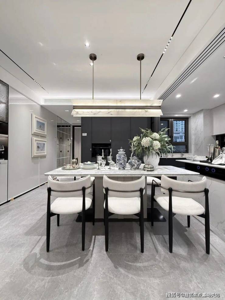 比如,厨房配了珍珠白吊柜、三组抽屉式拉篮合理搭配,调料架收纳、大容量踢脚抽、清洁用品收纳区,米面粮油、碗碟刀叉都可完美隐身。