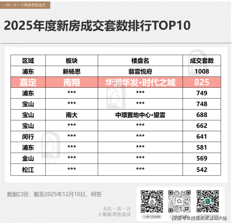 根据一房一万数据中心的追踪,2025年(截至12月9日)期间,时代之城以825套的成交量稳定嘉定第一,全市第二!