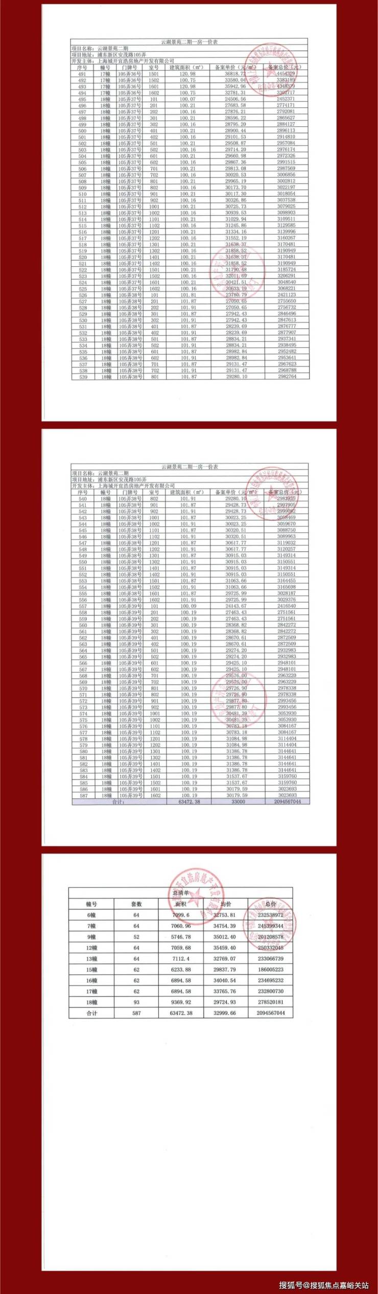 一房一价表