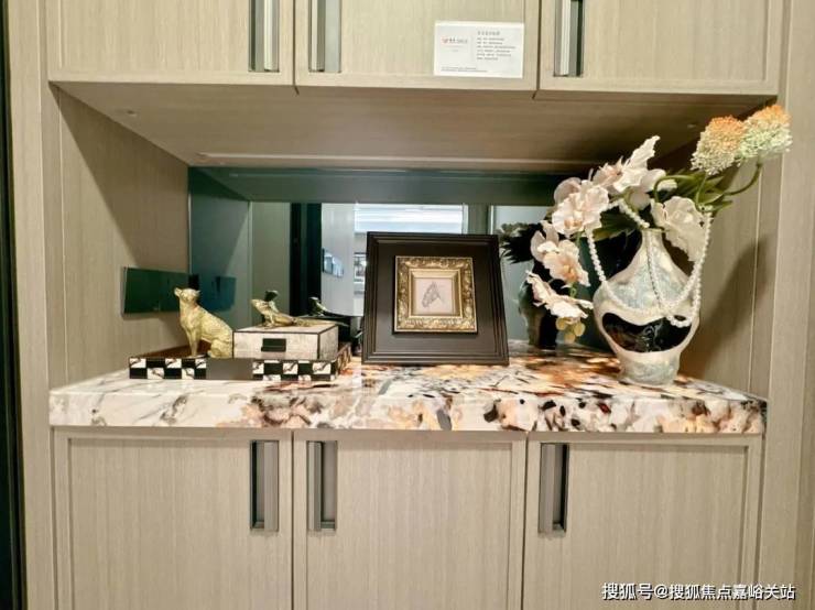 玄关柜台面,选用了 雪山飞狐奢石