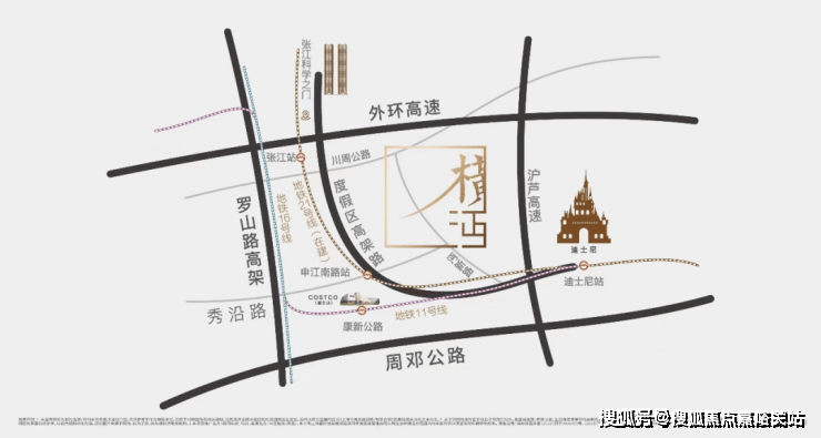 直线距离张江科学之门(在建)约4.8km,直线距离迪士尼乐园约2km,这样的天赋地段,造就了项目独有的红盘基因。