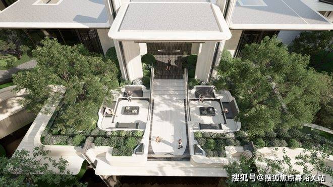 澐启滨江选择把这一切托付给“水”,也托付给一个以下沉水院为核心衍生的花园体系。它不是一个景观节点,而是一种居住哲学的具象化——在城市心脏处,以静水为引,以层层递进的自然密度,让生活回到最松弛、最深处的那一面。