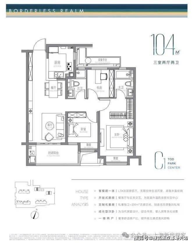 保利光合上城售楼处电话:4008569058☑️☑️建面约 104m²户型特点:LDKB洄游式竖厅+开放式厨房,生活尺度无限拉伸,主卧近6m²灵感空间,承载更多功能可能,成长型的次卧,书房儿童房随心所欲。保利光合上城售楼处电话:4008569058☑️☑️