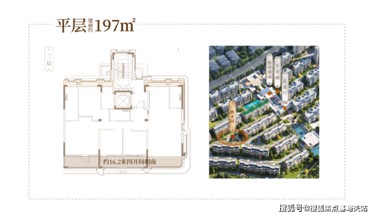 平层建面约197㎡凭借约16.2米四开间朝南+一层一户的设计,打造开放而又内敛的日常仪式感;