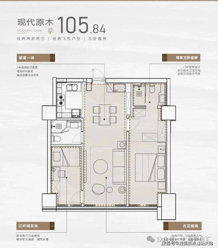 户型设计上,打破公寓常规暗间的局限,项目全部设计成全明2房或3房格局,做到没有一个暗间的居住空间,并全系标配主卧套房+双卫配置,提升居住配置。
