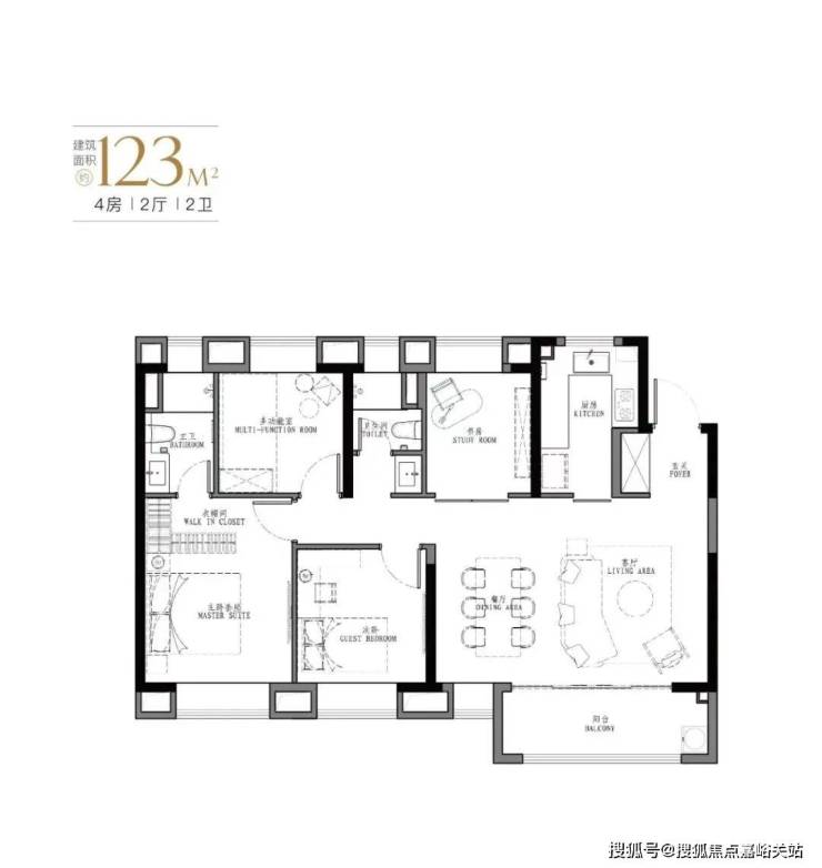 另外,四房+六飘窗+宽面阳台的设计,让整个空间更具延展性。