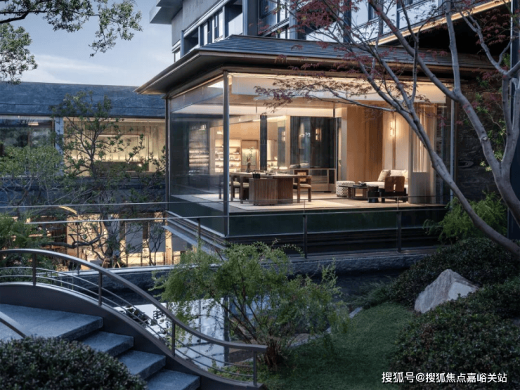 近460㎡的下沉式庭院,精选太行山金景石堆叠成小山丘,溪水,并移栽岭南珍贵的古桩铁冬青和中华原生乌桕树,寓意“聚财守业”!