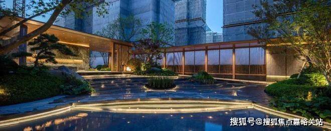 大华星曜售楼处电话☎:400-856-9058☑️☑️而大华星曜不仅打造了具有曲线美感的树池, 还在水景底部铺了数百片蓝钻瓷 片,全角度弧形定制,水刀切割,用金属线条勾勒出水波的形状。大华星曜售楼处电话☎:400-856-9058☑️☑️