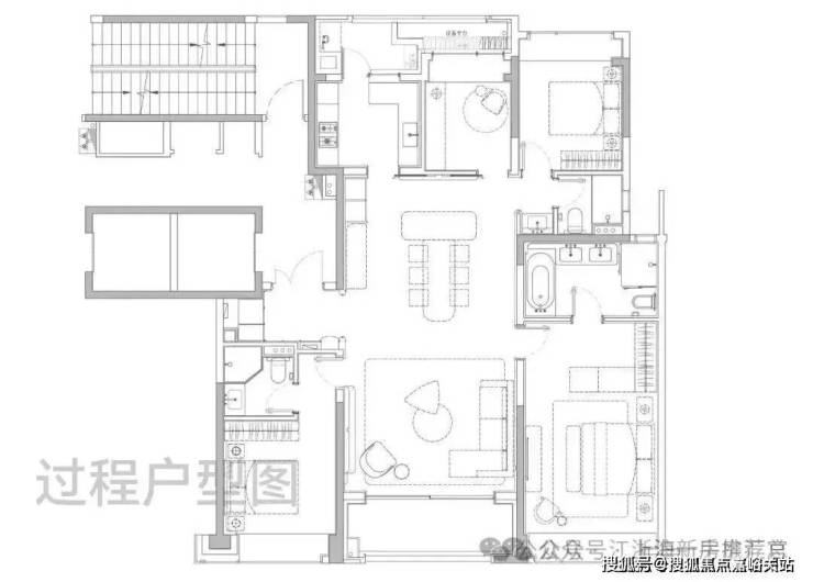 主卧大套房设计带超大主卫和衣帽间,面积约50㎡ ,尺度感与市面上近300㎡的顶豪拉平。
