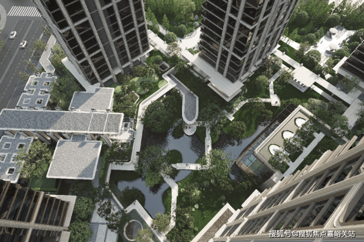 澐启滨江提出打造上海首个“全息生境旗舰社区”。其核心是以约3500㎡的下沉水院为核心,通过约6.5米全域架空与约6米下沉庭院的巧妙叠合,塑造出落差近13米的“自然峡谷”,视觉冲击力极为震撼。