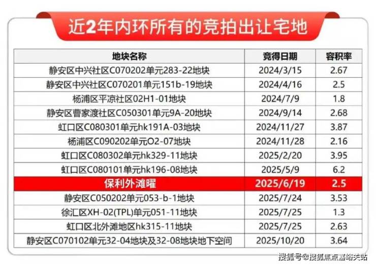 6月19日,2025年五批次土拍,保利发展经过95轮竞价摘得杨浦东外滩01C5-02地块(即保利外滩曜) ,成交总价350000万元,楼板价95530元/㎡,溢价率30.79%。
