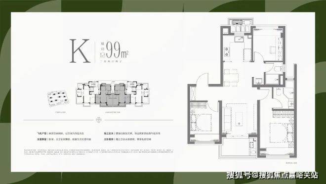 1、全部南向大面宽设计,保证最为出众的采光和视野需求;
