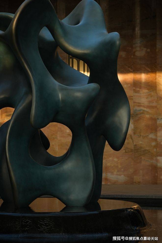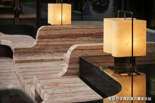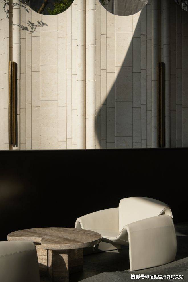 入口昭示面的黄铜饰面与石材柔美曲线,以轻奢材质和流动形态弱化城市硬边界,形成昭示性极强的“城市橱窗”。