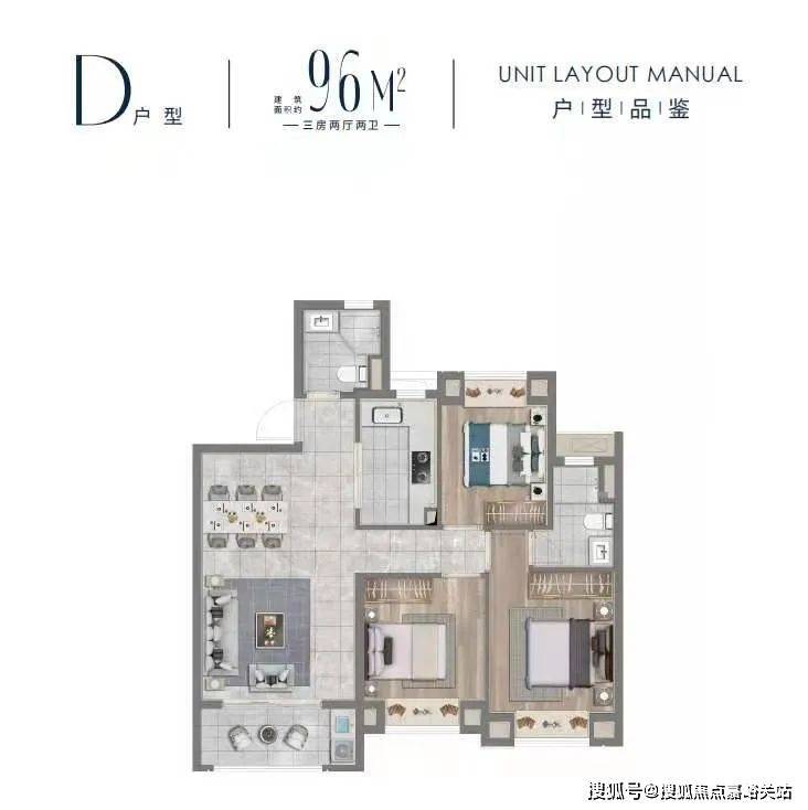 非标D1户型 建面约88㎡ 三房两厅一卫: