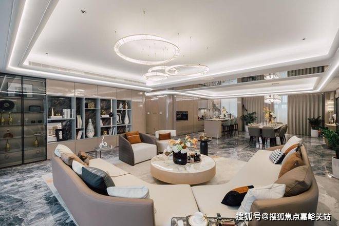 铝板+落地玻璃幕是当下大宅审美的重要要素,【品尊国际】采用全干挂金属铝板搭配全LOW-E3层中空玻璃幕墙,精密计算的超高窗墙比,形成了优渥的采光布局,以高贵韵律勾勒美学封面。