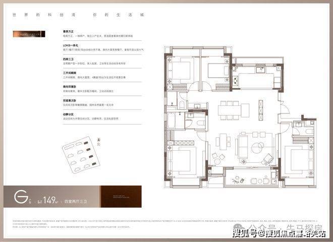 该户型最大亮点在于“3 卫” 配置,区别于市面上超98% 的150㎡四房两卫户型,可打造双南套房,充分保障家人的尊贵感与私密性。