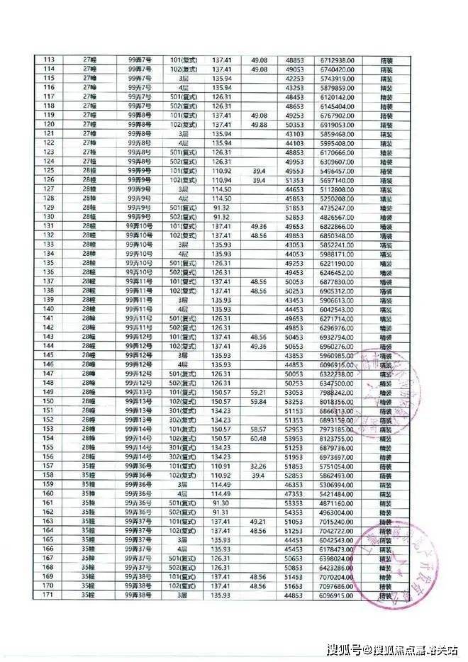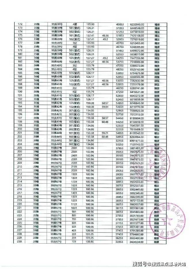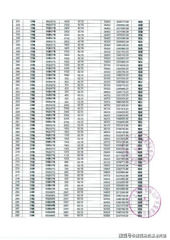 一房一价表如下