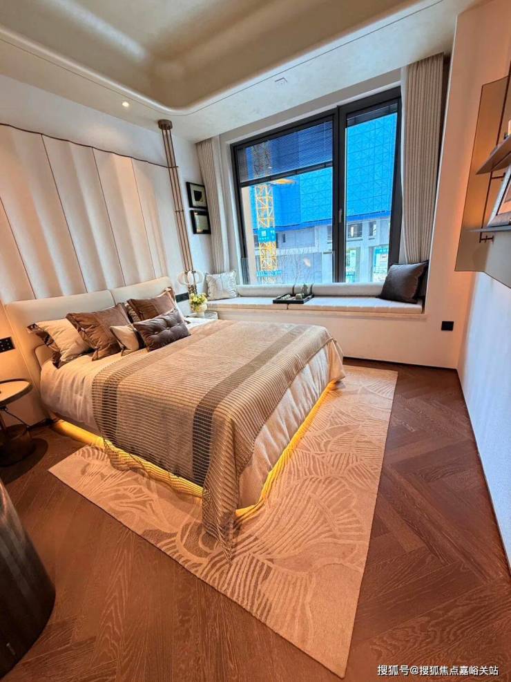 项目部分户型的 主卧不仅有约270度无柱飘窗,甚至还有户型做到了上海首个最大连续约12米无柱化设计的全景舱户型!