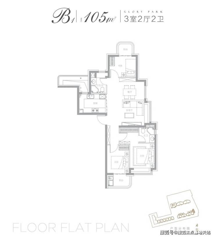 另外,一个优秀户型应该有的设计,包括入户玄关、3间卧室带飘窗、约270度采光面阳台、卫浴干湿分离...这个户型全部具备。