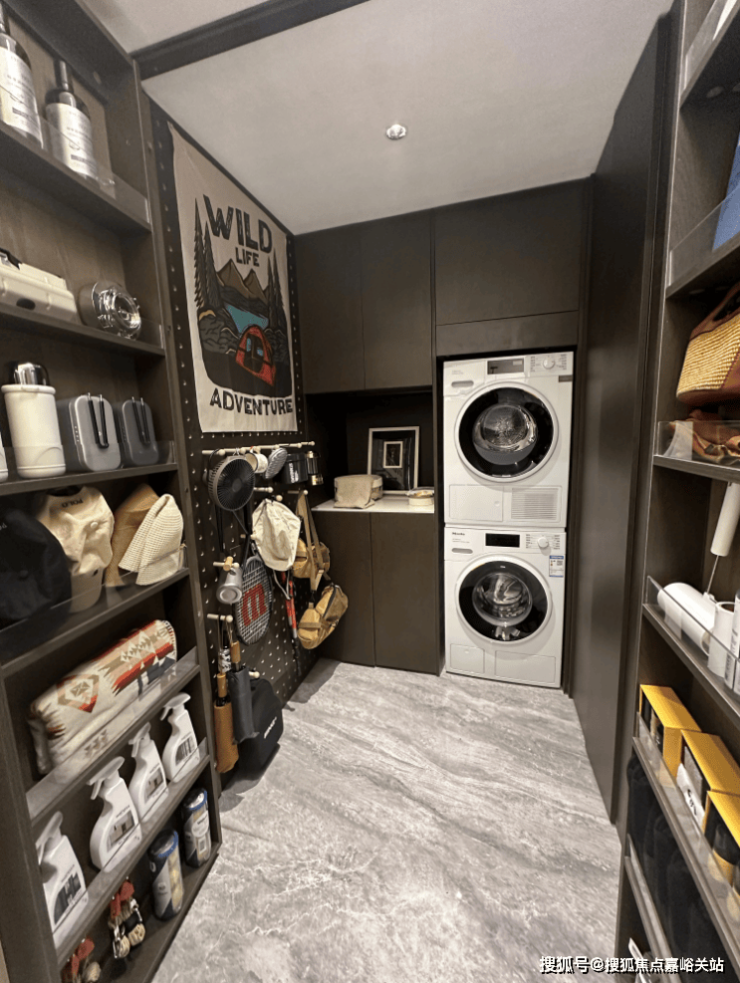 比如玄关部分别有洞天,步入式储藏空间面积接近4㎡,甚至比滨江部分230-350㎡的储藏室要来得大,提供了充足的空间来放置洗烘机、季节性物品、超大件行李箱、快递等等,家居生活更加井井有条。