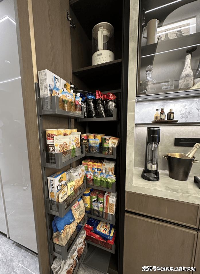 餐边柜 ,同样也是交付标准之一,无论是转角零食柜,还是酒柜,都贴心预留。