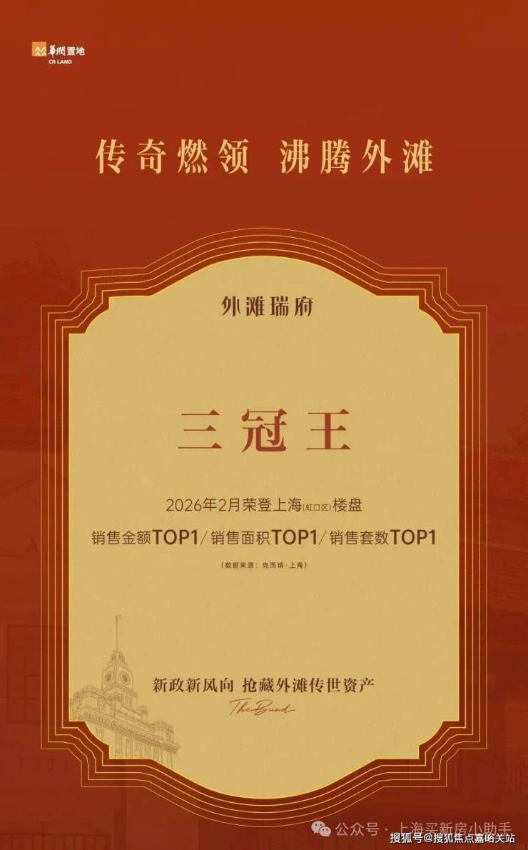 而如果你把时间再往前推到2月,会发现这并非偶然——外滩瑞府一举拿下虹口区楼盘销售金额TOP1、销售面积TOP1、销售套数TOP1,成为当月虹口“三冠王”。
