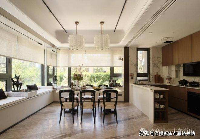 边套的餐厅、主卧和次卧,设置有多个270°全景飘窗,室内通透明亮。