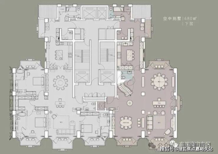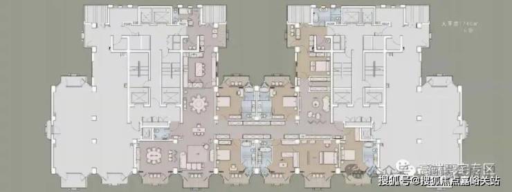 项目分三期开发,本次开盘为2号楼,预计今年开盘,2号楼户型分布为一层4户,中间两套为375平米边套为680平米复式,总楼层39层,有两层为避难层,避难层会改造成绿化休闲区。