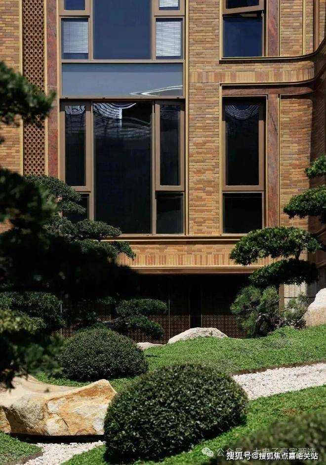外墙上交错排布的除了红砖与幻彩红奢石,还有更具光泽度的釉面砖;奢侈品店门头常用的陶砖,也被用在了越秀·外滩樾的外立面。每一款砖,都可以衍生出十余种做法,光是陶砖便有四种颜色、187种形制。这些砖块不是贴上去的,而是用了龙骨砌筑,它的整体成本甚至比石材还要昂贵。