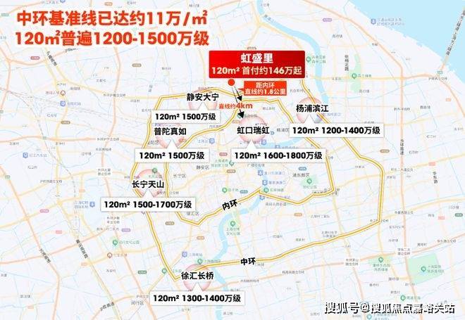 即便与同区域相比,优势同样突出——直线距离仅4公里的虹口瑞虹板块,120㎡房源总价已达1600-1800万级,虹盛里的差价接近一半,这样的性价比在市场中罕见,为资产安全筑牢基石。