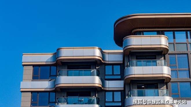 圆弧线条工艺搭配金属铝板、天然砖石,辨识度拉满;宽幕瞰景阳台延伸视野,鎏金冠顶点亮天际线,既刷新了虹口中环的城市界面,又彰显出精致典雅的格调。