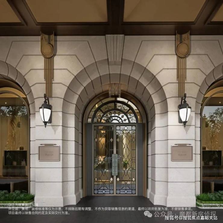 建筑立面通过明确的基座、主体与檐部层次,再现了经典新古典主义的庄重比例。