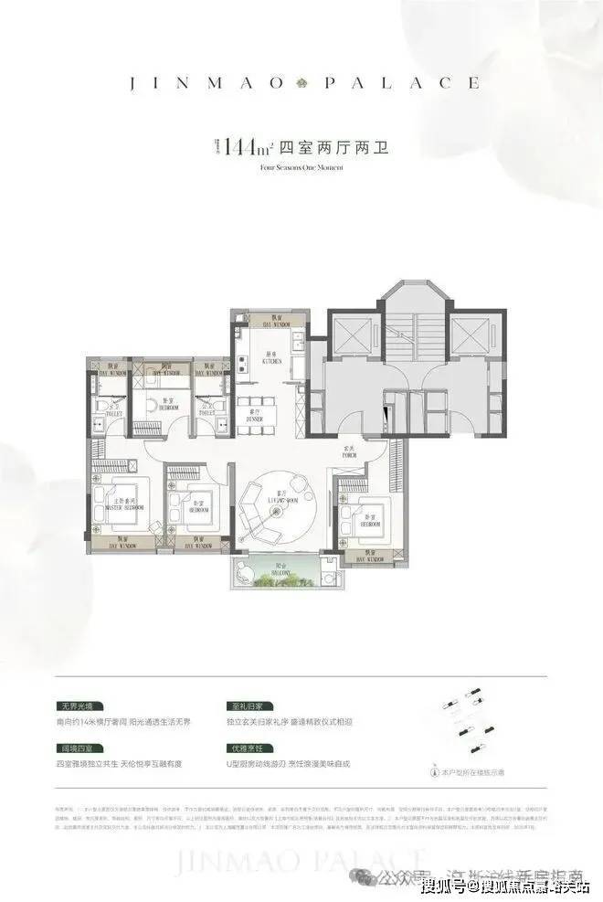 建面约144㎡4房: