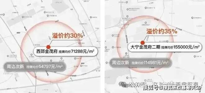 大宁金茂府二期挂牌约15.5万/㎡,周边次新整体挂牌约11.5万/㎡,金茂府有约35%溢价;
