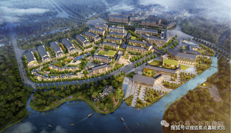 上实和风院位置崇明岛陈家镇,东临东滩大道,西临颐湖路,北临河;项目总占地约92533.2 m²,地上建筑面积约79211.13 m²,容积率0.86,绿化率35.8%,车位配比:约1:1.6,由 529套房子组成,其中337套合院别墅(148m²合院175套,175m²合院162套),192套洋房。