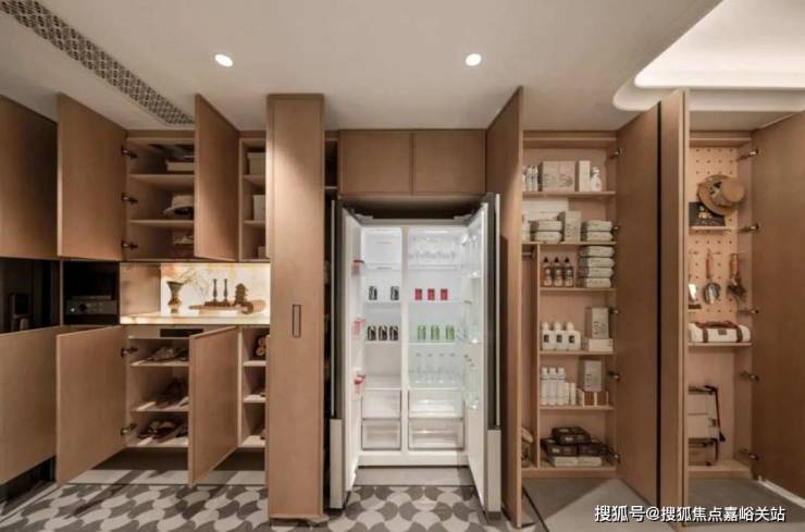 招商臻境|源上的收纳表现向来优越,而此次源上升级之后,舒适实用性再度上升一个大台阶。比如入户部分的玄关柜、墙柜、餐边柜等,都做了整排一体化。前期同样使用大受好评的 S墙设计依旧得到延续,冰箱可以平整嵌入,大方美观。