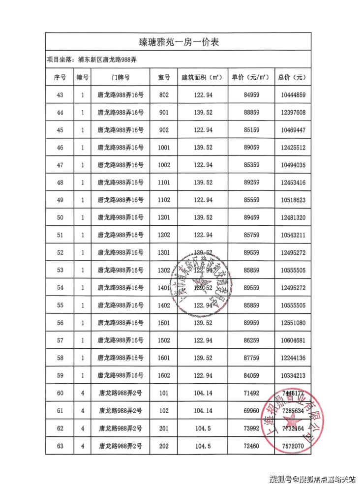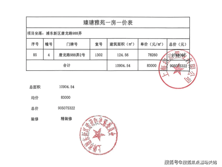 项目一房一价表