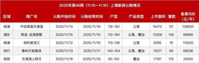 此外,浦东汤臣君品(均价19.68万元/平方米)与黄浦金陵华庭等高端项目认购率均超过140%,显示高总价楼盘在特定客群中仍具吸引力。但部分中端项目如中建山水雅境三期、招商序等去化率偏低,市场接受度有限。