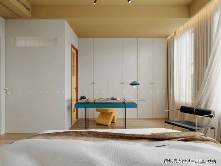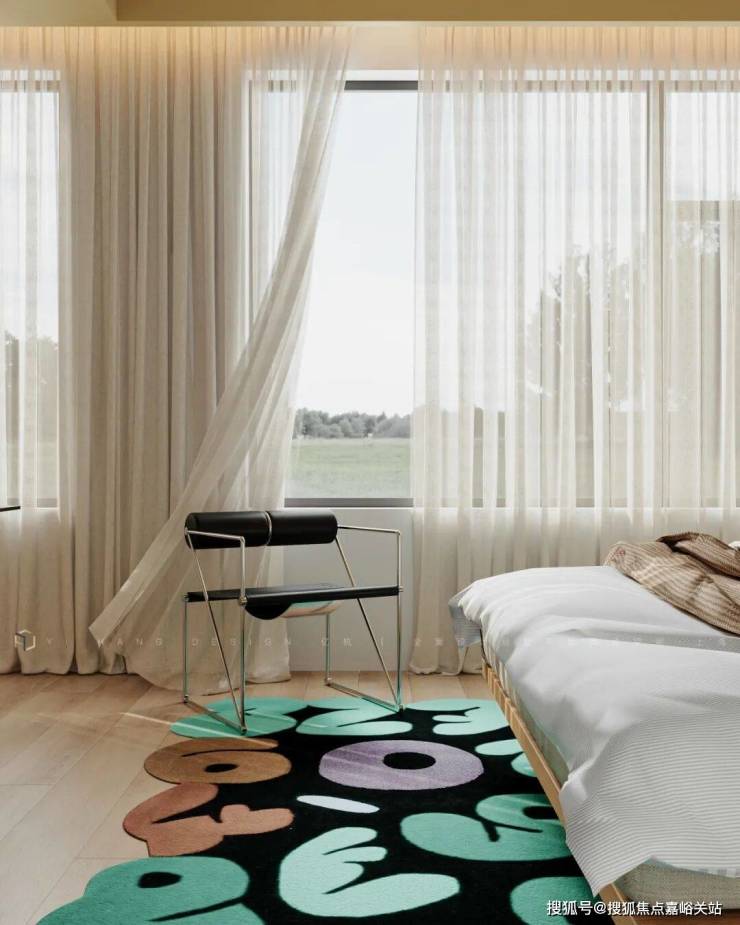 墙面以留白为纸,地毯色彩的的选择,斑斓且克制,在矛盾中,增强空间的层次感。