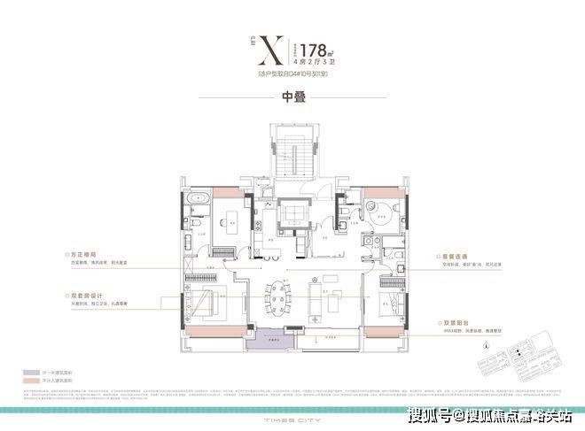 项目的中叠 四开间朝南,超大IMAX的采光面,妥妥市区豪宅大平层的尺度感。