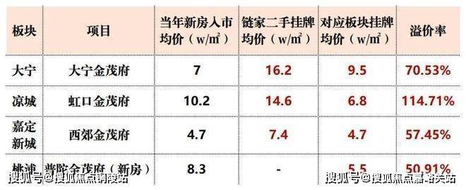 据贝壳数据统计,金茂府与同板块二手房相比,挂牌均价比板块均价高出50%以上,最高溢价甚至突破114.71%!