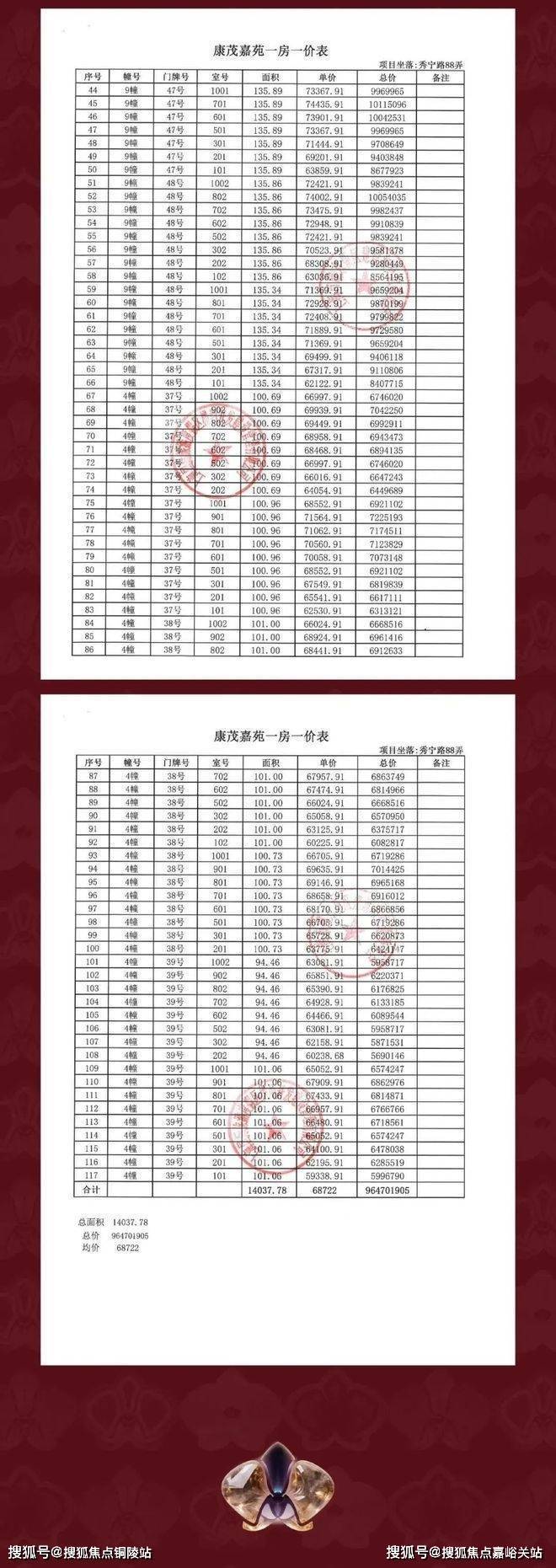 最新一房一价表曝光: