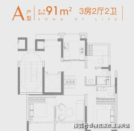 建面约91㎡3/2/2,小户型也有大格局