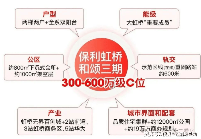 反观保利虹桥和颂三期,在轨交、能级、户型、公区等维度均属 300-600 万级的顶配水准。如今楼市早已告别盲目购房就能盈利的阶段,买房更该锁定同级别中的优质之选。保利虹桥和颂三期全维实力拉满, 妥妥的是 300-600 万级下半年的 C 位新盘!
