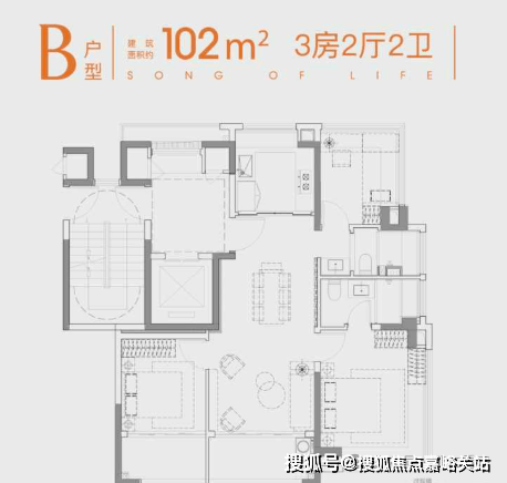 建面约102㎡3/2/2,景观与实用平衡得恰到好处