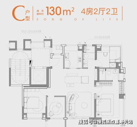 建面约130㎡4/2/2,130㎡的尺度,165㎡的体验