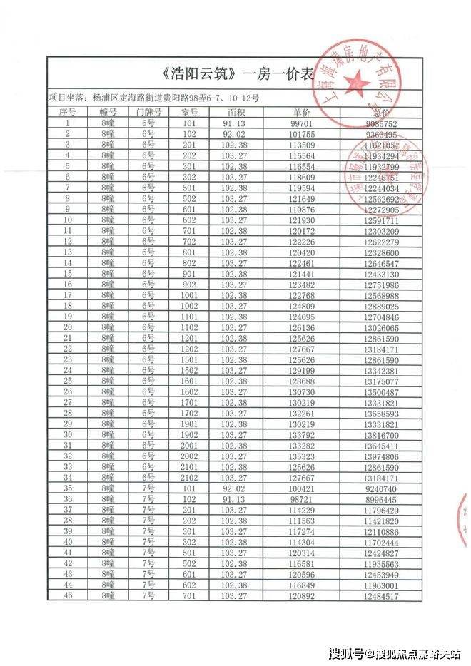 上期一房一价表: