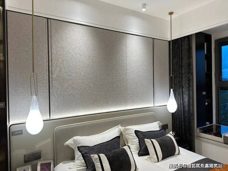 主卧床背景墙进行了软包处理,省去了业主未来二次装修的时间、精力跟成本,更好的给业主一个舒适且高颜值的家。