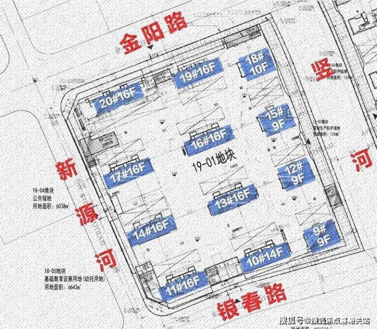 20-01地块:拟建6栋16F高层住宅、2栋14F高层住宅、3栋10F高层住宅、1栋9F高层住宅以及若干配套用房。